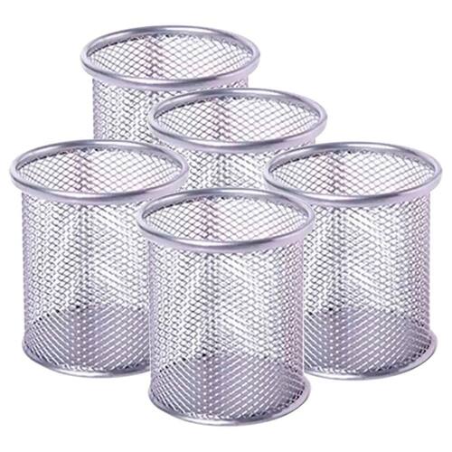 Kit 5 Porta Canetas Organizador de Mesa Redondo Telado Aramado Grampos Clips Escritório Home Office