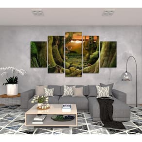Kit 5 Quadros Decorativos Animais Floresta Amanhecer Deixe seu ambiente mais agradável com Quadros Decorativos. Além de ser muito bonito é de alta qualidade, composto por impressão gráfica digital ecológica, extensão da imagem até as bordas, sem a necessidade de molduras e estrutura em madeira tratada com acabamento vinílico. O quadro é composto por 5 peças que se complementam, para deixá-los perfeitos em sua parede deixe um espaço com cerca de 1,2 cm entre uma peça e outra, assim as imagens irão se complementar e você terá um resultado fantástico. Características: . Os quadros decorativos são tendência em decoração . Composto por impressão gráfica de alta qualidade, com impressão digital ecológica . Acabamento nas bordas é a extensão da própria imagem, sem necessidade de moldura . Atóxica e sem cheiro, proporcionando imagens de alta qualidade e durabilidade . São compostos de madeira tratada com acabamento vinílico MODELO 5 PEÇAS: Tamanho: . Peças menores: 02 unidades - 22x35 cm . Peças médias: 02 unidades - 22x50 cm . Peça central: 01 unidade - 22x60 cm . Tamanho total: 116x60 cm . Espaçamento entre as peças: 1,2 cm . Conteúdo da embalagem: 1 quadro composto por 5 peças. Instalação e limpeza: Fácil instalação com fita adesiva dupla face já inclusa para que os quadros fiquem rente a parede. Para limpeza, utilize um pano umedecido sem produtos químicos para garantir a durabilidade da peça. Marca: Não Informado Ean: 7892100007194