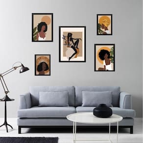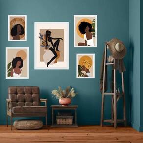 Kit 5 quadros mulheres negras boho Moldura: madeira branca Informações do produto tire todas as suas dúvidas no descritivo abaixo: decoração para quarto, sala, cozinha, escritório, área gourmet e muito mais. Chega de paredes vazias medidas - kit composto por 5 quadros, sendo 2 quadros com medida 18x24cm, 2 quadros com 24x33cm e 1 quadro com medida 33x45cm. Material do papel - papel fotográfico brilhante de altíssima resolução acabamento - todos os quadros são acompanhados de uma película de acetato para proteção da imagem. - os quadros são embalados de forma segura com plástico bolha com camada dupla de acordo com o tamanho dos quadros. - de 3 meses. Meu quadro chegou. Como posso fixá-lo Você precisa apenas de um martelo e um prego, pois os quadros já vão acompanhados de penduradores. Esta é a forma mais indicada. Caso prefira, você pode utilizar uma fita dupla face neste caso, sugerimos de alta qualidade para evitar que descole e seu quadro caia . Como posso limpar meu quadro A limpeza é feita como um móvel comum da sua casa. Apenas um pano seco ou espanador são suficientes para tal Marca: Não Informado Ean: 7893590422436