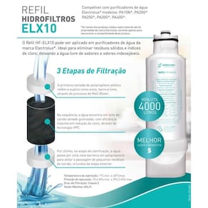 O refil hf-elx10 pode ser aplicado em purificadores de água electrolux dos seguintes modelos: pa10n, pa20g, pa25g, pa30g, pa40g.