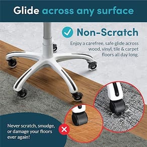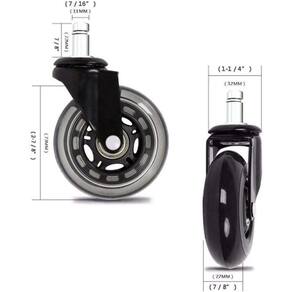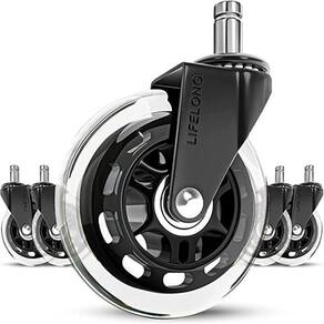 seguro para todos os pisos - muitas rodas de cadeiras usam materiais baratos e de baixa qualidade que destroem seu piso. Nós não. Nossas rodas têm material macio de poliuretano, estilo patins, garantem não arranhar ou deixar marcas em qualquer superfície incluindo madeira, carpete, azulejo, laminado e muito mais . Instalação rápida e fácil - não são necessárias ferramentas remova e substitua facilmente as rodas da cadeira em menos de 30 segundos. Basta retirar suas rodas antigas e colocá-las. Tamanho universal - atualize qualquer cadeira de escritório rolante com estas rodas suaves. A haste de tamanho universal caberá em quase todas as cadeiras de escritório do mercado. Se, por algum motivo, eles não se adequarem à sua cadeira específica, reembolsaremos totalmente e até pagaremos o de devolução. Suporta até 295 kg - fabricados com os melhores materiais disponíveis, esses rodízios são construídos para durar uma vida inteira. Aço de alta qualidade com tratamento térmico, rolamentos de de precisão e poliuretano durável fornecem anos de rolagem sem esforço. As rodas pesadas da cadeira suportam facilmente 295 kg. Kit 5 rodas