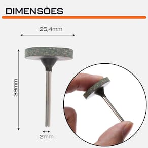 Roda de Borracha 25mm com Haste 3mm para Polimento com Micro Retificas Dremax - Marca: Dremax - Referência: PM014-2 - Diâmetro da cabeça: 25,4mm 1 Pol. - Espessura da Cabreça: 4mm - Diâmetro da haste: 3mm - Comprimento total: 38mm - Material: Borracha tipos esponja de gergelim - Uso em micro retíficas de qualquer marca com pinça de 3mm - Indiucado para polimento de metal, madeira, jóias e outros materiais. - Garantia: 90 dias contra defeitos de fabricação A DREMAX é a primeira e única marca brasileira dedicada exclusivamente às micro retíficas, acessórios e acoplamentos para esta indispensável ferramenta. Seja para trabalhos de precisão, artesanato, modelagem ou reparos, a DREMAX tem o produto certo para você. Marca: Dremax