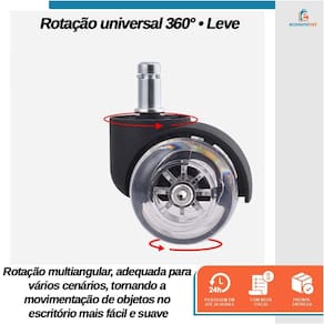 O Rodízio de Escritório da Starfer oferece uma solução de qualidade para cadeiras de escritório, apresentando roda em silicone de 2" de diâmetro, eixo giratório e pino de pressão de aço zincado. Com capacidade de peso de 25kg por roda, esses rodízios são ideais para melhorar a mobilidade e o conforto das cadeiras de escritório. O conjunto é composto por 5 rodízios duplos, embalados de forma segura em um saco plástico. Garanta durabilidade, resistência e deslocamento suave com os Rodízios Starfer.
