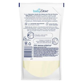 Com glicerina e nutrientes encontrados naturalmente na pele Sem lágrimas Hipoalergênico e com pH neutro Baby Dove é suave até o primeiro banho Criado sem corantes artificiais e sem parabenos Testado por dermatologista, oftalmologista e pediatra