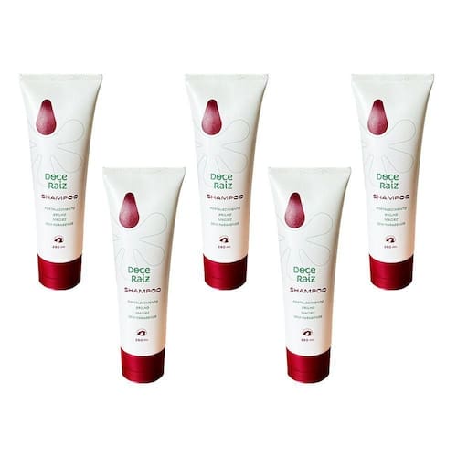 AS IMAGENS SÃO MERAMENTE ILUSTRATIVAS E PODEM SOFRER VARIAÇÕES DE COR E PEQUENOS DETALHES DE ACORDO COM O SEU MONITOR, ILUMINAÇÃO DO AMBIENTE E ATÉ MESMO A SUA PERCEPÇÃO VISUAL.Kit 5 Shampoo Natural Doce Raiz de Extrato de Batata Doce 250ml