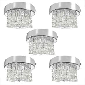 Kit 5 Spot Cristal Plafon Sobrepor Prata Brilhoso Corredor Bet45 Plafon de Sobrepor Prateado de Cristal K9