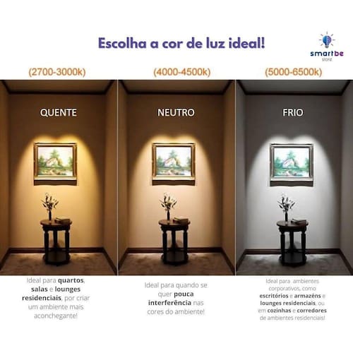 - temperatura de cor: branco quente(3000k) e branco frio(6500k)