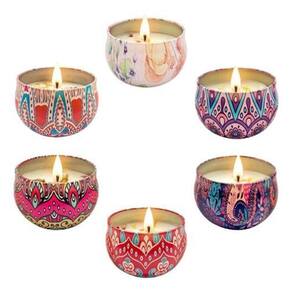 Kit 5 super velas aromaticas perfumada com cera de coco lata mandala decorativa 125g