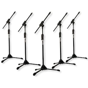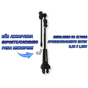 KIT 05 SUPORTE/PEDESTAL PARA MICROFONE PROFISSIONAL SOBRE O PRODUTO:Se é suporte profissional que você precisa, está no lugar certo.A IBOX empresa referência em suportes, nos traz o suporte/pedestal girafa universal para microfone.Projetado e desenvolvido com o maior padrão de qualidade, além de possuir um design inovador e dar outro visual a seu ambiente/estúdio/palco, ainda é leve, robusto e fácl de carregar.Suporte confeccionado em aço com pintura eletrostática, regulagem com gatilho para ajuste rápido de extensão e altura, tripé antiderrapante retrátil, proporcionando toda a tranquilidade em ter seus microfones seguros e livre de acidentes. CARACTERÍSTICAS DO PRODUTO: -MODELO: Suporte girafa para microfone;-COR: Preto;-MATERIAL: Tubos de aço com pintura eletrostática e peças de plástico injetado de alta resistência nas juntas e articulações;-MEDIDAS: 52cm ( haste da girafa ) 83 a 165cm ( altura );-TIPO DE ROSCA: 5/8" ( universal ). ITENS INCLUSOS: -05 Suporte/pedestal/tripé para microfone. OBSERVAÇÕES:-NÃO ACOMPANHA O CACHIMBO ( suporte para microfone );-Sistema de gatilho rápido, eliminando problemas com as manoplas de rosca;-Regulagem de altura de 81 a 165cm;-Garantia: 3 meses contra defeitos de fabricação. -Produto e à pronta entrega. Antes de finalizar a sua compra, tire todas as suas dúvidas no campo de perguntas, nossa equipe está aqui presente para sanar todas as suas dúvidas. Pedimos encarecidamente que após a compra, se ainda existir alguma dúvida ou houver algum problema com seu produto, NÃO ABRA UMA RECLAMAÇÃO, NOS CHAME NO CAMPO DE MENSAGENS que nos comprometemos e vamos com toda a certeza resolver todos os seus problemas. Muito obrigado. Obrigado pela preferência!