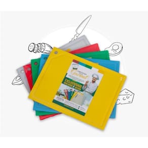 Kit 5 Tábuas De Corte Polietileno Chapa Pead 08X300X500Mm Fabricadas em plástico de alta qualidade, o PEAD (polietileno) é um material atóxico, aprovado e orientado pela Vigilância Sanitária (ANVISA) pra utilização em cozinhas residenciais ou profissionais, devido ao desempenho e facilidades do produto, aliado a segurança e manuseio dos alimentos. As diversas cores sugerem uma tábua para cada tipo de alimento, seguindo as normas internacionais de padrão de qualidade, evitando assim a contaminação cruzada. Com furo e acabamento Acompanha suporte para mesa Cor: Branco, Vermelho, Verde, Amarelo e Azul