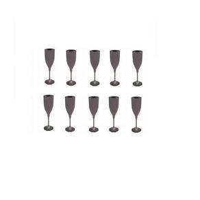 Kit 5 Taças Champanhe Cinza Acrílico Leve 180Ml