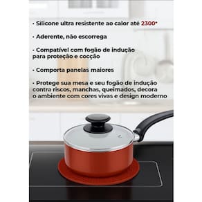 DESCRIÇÃO: Use os Descansos Almofadas de Silicone para Fogão de Indução sobre a boca do fogão por indução para que a panela não tenha contato direto com o tampo do fogão, evitando arranhões.