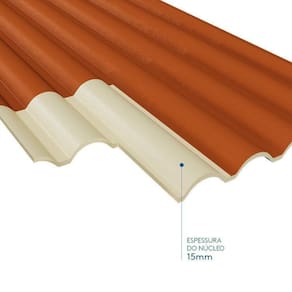 Vão Máximo Entre Apoios: 1,60m. Acabamento: Fosco Altura do Conjunto: 244 cm Ambiente: null Ambiente Principal: Comércio Cor: Terracota Cor Predominante: Marrom Garantia do Fornecedor: 12 meses Informação Complementar: 5x Telha Sanduiche Ondulada, sem Forro, 2.44cm X 100cm X 15mm com Isolamento Térmico em Pir - Largura: 100 cm Altura: 244 cm