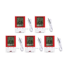 KIT 5 TERMO-HIGRÔMETRO DIGITAL PORTÁTIL, COM SENSOR INTERNO E EXTERNO, PARA MESA OU PAREDE COM RELÓGIO E IMÃ MOD. HT-750 DESCRIÇÃO: Termo-higrômetro mod. HT-750, medição de temperatura interna e externa, suporte para mesa, parede e metais (possui duplo imã interno), ampla faixa para medição de umidade de 10 a 99% U.R., alta estabilidade e precisão, baixo consumo de bateria, sensor externo flexível e removível com cabo de 3 metros e ponta metálica inoxidável, escala de conforto, amplo display LCD com exibição de temperatura, umidade, horário e conforto simultaneamente, função de máxima e mínima, relógio selecionável entre 12/24 horas, unidades selecionáveis entre ºC ou ºF, função de alarme integral sonoro com função soneca, função calendário (mês e dia), construído em plástico ABS e PS APLICAÇÕES: Equipamento efetua medições de temperatura e umidade de ambientes internos e ao mesmo tempo monitora a temperatura de ambientes externos, câmaras frias, geladeiras, entre outros com seu sensor flexível com cabo de 3 metros, podendo ser utilizado em hospitais, laboratórios, clínicas médicas e odontológicas, cozinhas industriais e domésticas, escritórios, sala de reuniões, estufas, entre outros.Pode também ser um ótimo item para eventos corporativos e datas comemorativas ESPECIFICAÇÕES TÉCNICAS: Display LCD triplo Escala de conforto: Confort (conforto), Dry (clima seco) e Wet (clima úmido) Faixa de medição de temperatura Interna: -30 a 60°C (-22 a 140°F) Externa: -50 a 70°C (-58 a 158°F) Resolução: 0,1 ºC /°F Exatidão: ±1ºC (1,8°F) Faixa de medição de umidade: 10 a 99% U.R. Resolução: 1% U.R Exatidão: ±5% U.R. (40 a 80% U.R.) Sensor externo flexível com cabo de 3 metros removível e com ponta metálica inoxidável. Suporte: Mesa, Parede e Metais (lisos) Duplo imã interno para fixação em bases metálicas (Evita riscos a base metálica) Construído em plástico ABS e PS Relógio selecionável entre 12 e 24 horas Função Calendário (exibe dia e mês) Alarme sonoro (despertador) Função Soneca com intervalo de 10 minutos Exibe simultaneamente horário, temperatura, umidade e a sensação de conforto Função máxima e mínina de umidade e temperatura Exibição de temperatura em Celsius (°C) e Fahrenheit (°F) Baixo consumo de bateria Alimentação: 1 pilha de 1,5V "AAA" Temperatura do ambiente: -30 a 60°C (-22 a 140°F) Umidade do ambiente: 10 a 90% U.R. Dimensões do sensor externo: Comprimento: 3000mm Bitola do cabo flexível: 2mm (não interfere no fechamento de geladeiras) Ponta metálica: 25,5 x 4mm (inoxidável) Dimensões do aparelho (C x L x A): 115 x 64 x 18mm Peso: Aprox. 91g. ACESSÓRIOS FORNECIDOS: 5 - Termo Higrômetro Ht-750 5 - Pilha de 1,5V "AAA" 5 -Sensor de temperatura externa de 3m Manual de Instruções