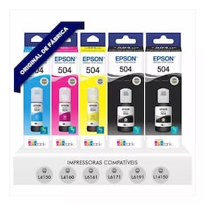 Kit 5 Tintas T504 EPS 504 EcoTank L4150 L4160 L4260 L6161 L6171 L6191 L6270 L14150