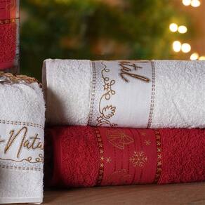 Kit Toalha de Rosto Feliz Natal Bordada Jacquard 45x68cm (100% Algodão) - Disponível nas Cores Vermelha e Pérola