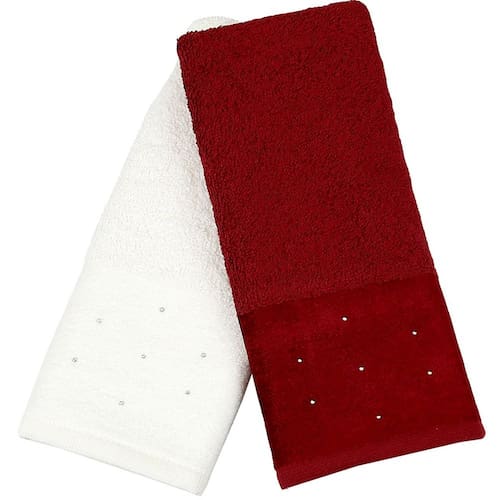 Kit 5 Toalha Lavabo Cristal Natalina 30x50cm Off White/Burgundy -