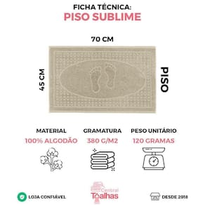 Características do produto: Medidas: 45cm x 70cm Peso: 120 Gramas Gramatura: 380 g/m2 Material: 100% Algodão Modelo: Sublime Garantia: Contra Defeitos de Fabricação