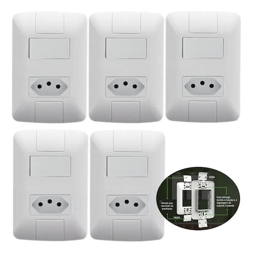 Kit 5 Tomadas E Interruptor Tramontina Aria Branca 10A