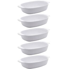 Kit 5 Travessas para Servir de Melamina Branca 23cm com Alças para Restaurantes Casa Milão Lyor.