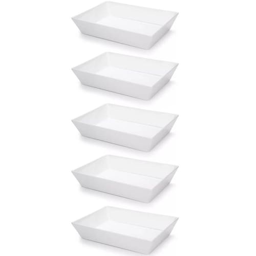 Essas travessas retangulares pretas são uma ótima opção para compor sua mesa. Por possuírem design diferenciado e tamanho grande, podem ser utilizadas para servir diversos alimentos, como saladas, petiscos, risotos, sobremesas, entre outros. Esse kit de 5 bandejas para servir a mesa conta com peças robustas, compatíveis com microondas, freezer e lava-louças, tornando sua rotina ainda mais prática. Garanta qualidade e funcionalidade servindo os alimentos nas travessas retangulares Coza. Ean: 7798138563339