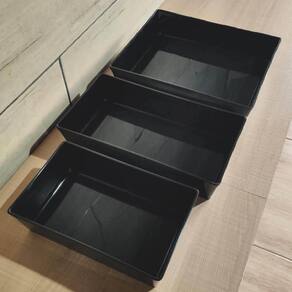 Garantia: 90 dias / Peso total: 1,640kg / Cor predominante: preto/ Ref: 7794462953082; Dimensões de cada travessa: 32,5cm (C) x 17cm (L) x 7cm (A); Capacidade de cada travessa: 3 litros; Material: polipropileno (PP); Conteúdo: 5 travessas retangulares.