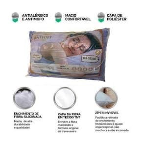 Produto de excelente qualidade e com o melhor custo benefício do mercado, além disso o nosso travesseiro tem tecidos que possuem um tratamento especial contra a proliferação de ácaros e outras bactérias, prevenindo e evitando crises alérgicas.