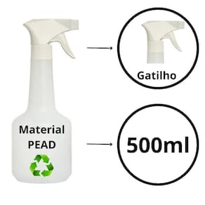 Borrifador De Plástico Pulverizador Spray 500ml - Material PEAD mais resistente que o PET Você Receberá 5 Unidades do Borrifador Esse Borrifador é um item super Versátil e resistente com gatilho ergonômico, Desenvolvido para utilizar na limpeza dos mais diversos tipos de ambientes e aplicação de produtos. Feito de plástico, possui capacidade para 500ml, alcança o fundo do frasco fazendo sair todo o líquido de dentro do recipiente. O Borrifador, conta com modelo tradicional em formato de garrafa, ideal para uso no dia a dia em ambiente doméstico, Barbearias, jardins que necessitam o uso de agua ou outros liquidos. Nosso pulverizador é para uma variedade de finalidades. Na jardinagem, é ideal para a aplicação de fertilizantes, , herbicidas e nas plantas e no solo, garantindo uma distribuição uniforme e eficaz dos produtos químicos. Na agricultura, pode ser para a pulverização de defensivos agrícolas em grandes áreas cultivadas. No âmbito doméstico, o pulverizador/borrifador é útil na limpeza de pisos, janelas, móveis e outras superfícies, permitindo a aplicação de produtos de limpeza De forma controlada e eficiente. Também pode ser utilizado para regar plantas de interior ou em pequenos jardins, Proporcionando uma irrigação precisa e cuidadosa. Além disso, o pulverizador/borrifador encontra aplicação em setores industriais, Como limpeza de equipamentos, higienização de espaços, aplicação de produtos químicos em processos de produção, entre outros. Esse produto é altamente ajustável, permitindo a regulagem da pressão do jato, ângulo de pulverização e tipo de padrão de pulverização, Como neblina fina ou jato concentrado. Isso proporciona flexibilidade e adaptabilidade para diferentes tipos de tarefas e necessidades específicas. Ao utilizar produtos químicos, ou outros produtos tóxicos, não esqueça de usar luvas, máscara e óculos de proteção. Características: Composição: Plástico PEAD Capacidade: 500 ml Com gatilho