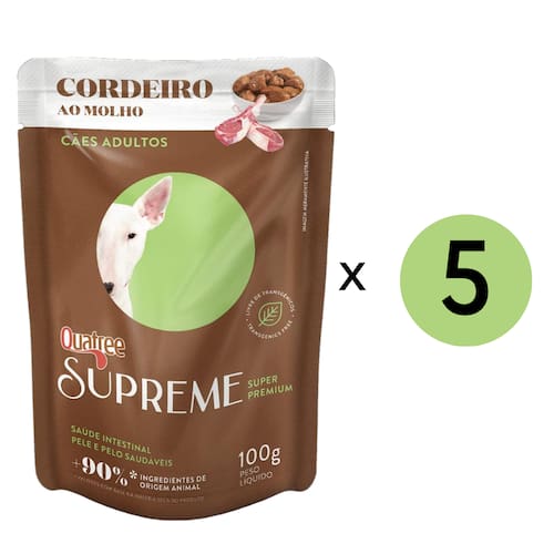 Kit contendo 5 unidades de Ração Úmida Quatree para Cães Supreme Adulto Sabor Cordeiro Sachê 100gr