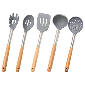 Kit de utensílios de cozinha de silicone, com cabo de inox e madeira, de alta qualidade e muito sofusticado. Você vai adorar resistente à altas e baixas temperaturas, super funcional e fácil de limpar. Agora você vai mostrar quem é o chef Produto premium Produto de alta qualidade