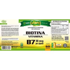 O que é a Vitamina B7 Biotina da Unilife A vitamina B7 Biotina da Unilife faz parte do complexo de Vitamina B, todas vitaminas do complexo B não são produzidas pelo corpo, ou seja precisamos adquirir ela por dietas, entretanto a Vitamina B7 está presente na maioria dos alimentos, mas ela é umas das mais ausentes em todos os organismo, isso acontece devido ela ser muito frágil, e no seu processamento pode ser destruída com muita facilidade e assim perdemos todos seus nutrientes, o que nos resta é suplementar a Vitamina B7 Biotina para obter a quantidade exata sem nenhuma preocupação, pois a carência de B7 pode afetar diretamente o sistema nervoso, coração, e a função digestiva. Como utilizar a vitamina Biotina B7 da Unilife A fabricante Unilife recomenda a utilização de 1 cápsula diária após a principal refeição do dia, deve-se consumir juntamente com líquidos para melhor absorção pelo organismo. A equipe da Edin adverte que qualquer alteração dessa dosagem deve ser feito com um acompanhamento nutricional adequado. Marca: Não Informado Ean: 7908609503256