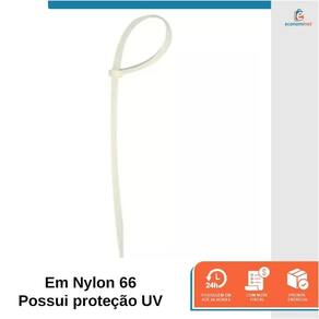 A Abraçadeira Nylon é ideal para o uso doméstico e industrial; prender fios, cabos, mangueiras, fixação de chicotes, lacre de embalagens, cabos de redes e outros. Fabricada em nylon é resistente à água e óleo, temperatura, intempéries climáticas e estabilidade dimensional mesmo sob o efeito do calor.