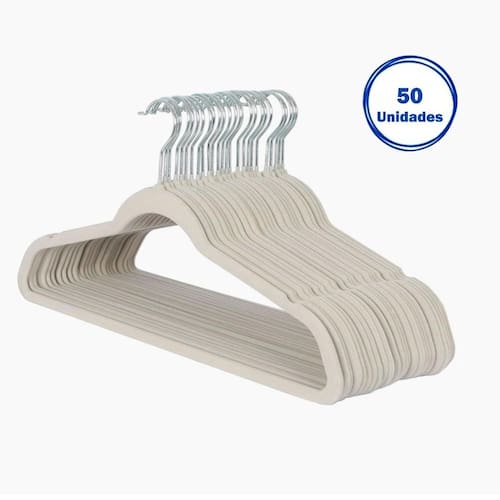 Kit 50 Cabide De Veludo Anti Deslizante Slim Resistente Bege