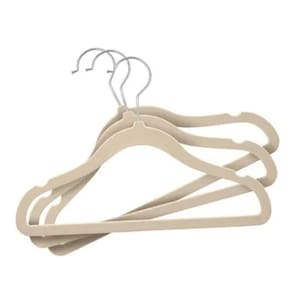 Cabides com hastes fixas em aço cromado e de plástico revestido com veludo.