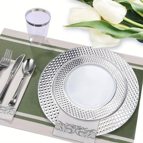 Transforme suas festas em eventos extraordinários com nosso Kit de Materiais Descartáveis de Luxo Este incrível conjunto de peças é a escolha perfeita para quem busca sofisticação sem abrir mão da praticidade. Por que escolher nosso Kit de Luxo: Elegância que Marca Presença: Com 50 pratos grandes 26CM e 50 pratos pequenos para sobremesa 19CM , este kit em cor Dourada vai garantir que sua mesa se destaque pela elegância em qualquer ocasião. Versatilidade Completa: Não esquecemos dos detalhes Incluímos 50 copos de 300ml, proporcionando a versatilidade que suas celebrações merecem. Alta Qualidade, Zero Compromisso: Feito de plástico premium, nosso kit une durabilidade com a praticidade do descartável. Assim, você pode aproveitar o momento sem se preocupar com a limpeza. Seja o Anfitrião que Todos Lembram: Surpreenda seus convidados com a sofisticação deste kit. Não perca tempo, adquira agora e eleve suas celebrações a um novo patamar de estilo e conveniência Composição: Plastico Kit de 470 peças 50 Pratos Grande para Refeição 26CM