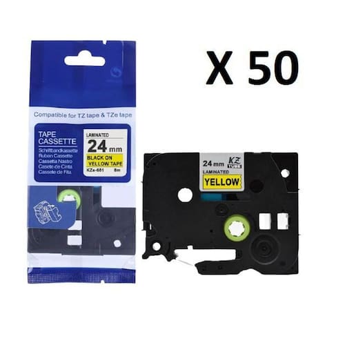 Kit 50 fitas compatível brother tze-651 amarela letra preta 24mm
