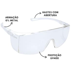 Os óculos de proteção sky combinam estilo e segurança. Sua armação isenta de partes metálicas possibilita o uso em trabalhos com eletricidade. Suas hastes tipo espátula com abertura na ponta permitem a colocação de cordão. Oferecem proteção: UV400 que filtram 99,9% dos raios UVA/UVB até 380 nm, alto impacto e lateral.