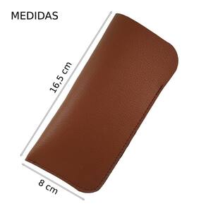 Kit 50 Estojo Porta Óculos em material sintético material sintético Curvim O porta óculos é muito funcional, prático, leve, compacto e com design moderno, ideal para guardar e proteger qualquer tipo de óculos, sendo com grau ou de sol.Seu grande diferencial é ocupar menos espaço comparado com caixinhas convencionais, podendo levar em bolsas, mochilas e até mesmo em seu bolso, o que facilita o manuseio no dia a dia.Confeccionado em material sintético, costurado nas bordas, resistente e impermeável, que garante alta durabilidade. Cor: Marrom Medidas: Altura: 16,5 cm Largura: 8,0 cm Marca: Não Informado