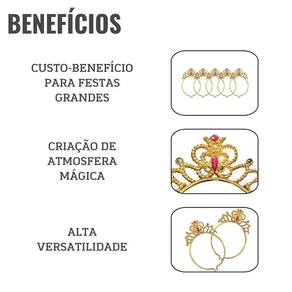 Combine as tiaras douradas com varinhas de condão e outros acessórios temáticos para criar uma festa inesquecível.