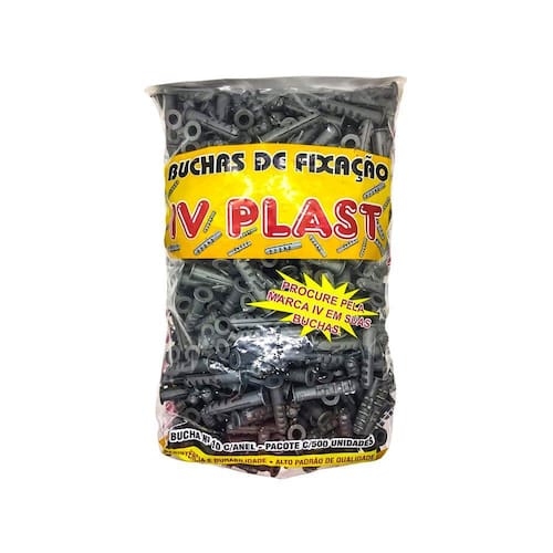 Pacote com 500 buchas plastica de 10mm para uso em paredes, concreto, cimento e alvenaria em geral. Utilizado com parafuso de rosca madeira ou auto atarraxante. Utilizado para fixação de armários, prateleiras, quadros, acessórios de banheiro, etc. Informações técnicas: » Bucha 10mm (Com Anel / Aba) » Comprimento da bucha: 50mm » Profundidade minima para furo: 70mm » Diâmetro recomendado do parafuso: 6 - 8 (mm) » Produzido em Polietileno de alta densidade » Apresenta aletas e braços que fazem a bucha não girar dentro do furo. Inclui no pacote: » 500 Buchas 10mm com anel / aba