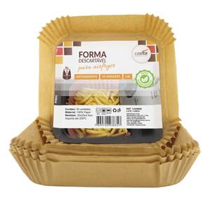 Kit com 500 Formas de Papel Descartável para Airfryer - Praticidade e Limpeza Impecável na Sua Cozinha!Descomplique suas refeições com o Kit 500 Formas de Papel Descartável para Airfryer . Perfeito para quem busca otimizar o tempo e manter a Airfryer sempre limpa, esse kit traz praticidade e qualidade, garantindo uma experiência culinária sem sujeira e sem grudar.Benefícios IncríveisAdeus à Limpeza Pesada : Com as formas adicionais, você não precisa mais perder tempo limpando o cesto da Airfryer. Ao finalizar, é só descartar e sua Airfryer está pronta para o próximo uso.Cozimento Saudável e Sem Gordura : Dispensa o uso de óleo, mantendo seus alimentos mais leves e crocantes. O papel antiaderente de alta qualidade evita que os alimentos grude, preservando sabor e textura.Versatilidade e Compatibilidade : Compatível com diversos modelos de Airfryer, forno elétrico e micro-ondas, estas formas permitem cozinhar uma ampla variedade de receitas de batatas fritas a pequenos bolos.Características do ProdutoTamanho Universal (24x20x4,5 cm) : Formato quadrado com medidas ideais para acomodar diferentes tipos de alimentos e distribuir o calor de maneira uniforme.Material Biodegradável e Resistente : Fabricados em papel de qualidade alimentar, suportam temperaturas de até 200C e são seguros para sua saúde e para o meio ambiente.Quantidade e Praticidade : O kit vem com 500 formas fornecidas, garantindo um estoque consistente e perfeito para o dia a dia agitado.Por que escolher as formas de papel para Airfryer?As formas de papel envolvem oferecer uma solução prática e eficiente para quem quer cozinhar sem se preocupar com a limpeza posterior. Feitas para resistir ao calor e não alterar o sabor dos alimentos, elas tornam cada preparo mais rápido e sem sujeira.Atenção: Nunca pré-aqueça a Airfryer com o papel sem alimentos, pois isso pode causar queimaduras no papel.Quantidade : 500 unidades (10 pacotes de 50).Dimensões : Diâmetro superior 24 cm, diâmetro do fundo 20 cm, altura 4,5 cm.Compatibilidade : Airfryer, forno elétrico e micro-ondas.Não perca a oportunidade de transformar a rotina da sua cozinha! Adquira agora o Kit 500 Formas de Papel Descartável para Airfryer e experimente uma nova maneira de cozinhar com menos esforço e mais sabor.