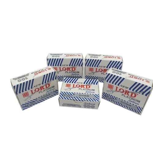 500 quinhentas meia-lâminas de barbear descartável da marca new lord platinum saloon - produto. Embalagem: 05 caixas contendo em cada uma delas 100 cem meia lâminas lamina partida ou quebrada de barbear descartável em aço inoxidável . Produto higiênicamente embalado - produto importado, produzido no egito. Produto não perecível com prazo de validade indeterminado. Kit econômico ideal para o profissional de salão de beleza barbeiros e cabeleireiros a . Marca: New Lord
