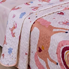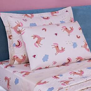 Kit 5 Peças Fantasy = Colcha Solteiro Infantil + Jogo De Lençol - Unicórnio RosaOpção perfeita para quem gosta de mudar o visual do quarto. O Kit Fantasy é fabricado com estampas temáticas e divertidas que vão complementar a decoração do quarto do seu pequeno.Contém na embalagem:01 Colcha 2,40m comprimento x 1,60m largura01 Porta Travesseiro 70cm x 55cm 01 Lençol de cima 2,50m X 1,50m 01 Lençol de Baixo com Elástico 90cm X 1,90m X 30cm 01 Fronha 70cm X 50cmComposição da Colcha:Tecido Microfibra: 100% PoliésterEnchimento: 100% PoliésterComposição do Jogo de Lençol:Tecido Microfibra: 100% PoliésterAs fotos são meramente ilustrativas. As cores podem variar de acordo com cada monitor e não representam todas as peças que compõem a descrição do produto. Fique atento à descrição do produto.