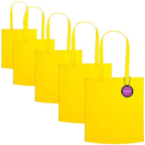 Kit 5x Sacola Ecobag em TNT Premium 37x41cm Termo Selado Malta TopGet - Amarelo