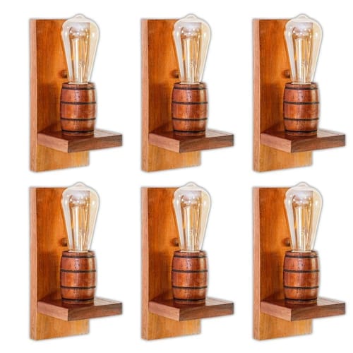 O Kit com 6 Arandelas Madeira Maciça - Modelo Barril é ideal para quem busca criar uma atmosfera de elegância e aconchego em diversos ambientes internos. Com design colonial rústico, oferece uma iluminação suave e sofisticada para salas, corredores, varandas e espaços gourmet.