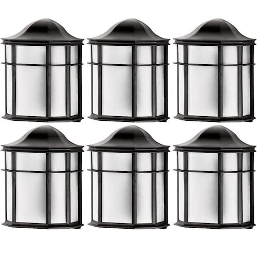 Kit 6 Arandelas Luminária de Parede 19x25cm Preta Lente Fosca De Ville Dital.