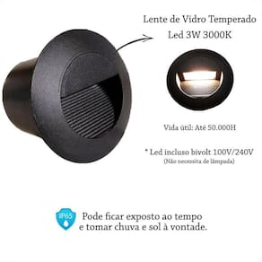 Esse é o balizador ideal para iluminar os seus caminhos internos ou externos. O Lup74 é uma peça para você embutir na sua escada ou parede. O seu destaque está na sua cor preto fosco texturizado e a sua usabilidade de instalação. Perfeito para áreas no geral como: corredor, garagem, escada, jardim, etc. Lup74 é o balizador para você iluminar os seus caminhos. O seu índice de proteção IP65, fornece uma proteção total contra poeira e protege contra jatos de água.Neste kit contem 06 balizador lup74. Descrição do balizador:- Material: Alumínio de alta qualidade- Led integrado incluso - Led: Vidro Temperado- Cor: Preto fosco texturizado- Dimensões:Diâmetro: 8,4 cmProfundidade: 4,3 cm Recorte:Diâmetro recorte maior: 6,7 cmDiâmetro recorte menor: 6,4 cmProfundidade: 4,3 cm- Potência máxima: 3W- Temperatura de Cor: 3000K- Tensão: Bivolt 110V - 220V - Grau de Proteção: IP65- Facho: 1- Vida Útil: 50.000 HorasNão necessita de lâmpada.