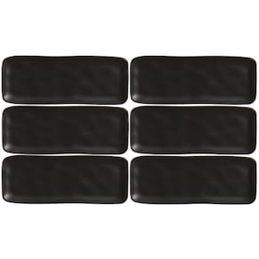 Kit 6 Bandejas Cerâmica Servir Sushi Sashimi 33x13cm Preto Travessa Porto Brasil.