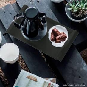 Kit 6 Bandejas de Servir com Alças 34x19cm Plástica Pretas Café da Manhã Coza Casual