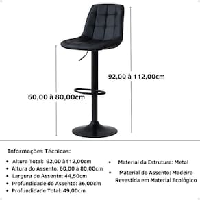 Seu assento é estofado com espuma de alta qualidade, proporcionando um conforto excepcional. Além disso, o encosto oferece suporte adicional, permitindo que você relaxe por longos períodos. Esta banqueta é ideal para diversas situações, desde reuniões casuais até momentos de descontração. Ela também é perfeita para cozinhas com balcão ou ilhas, criando um espaço aconchegante para refeições rápidas.